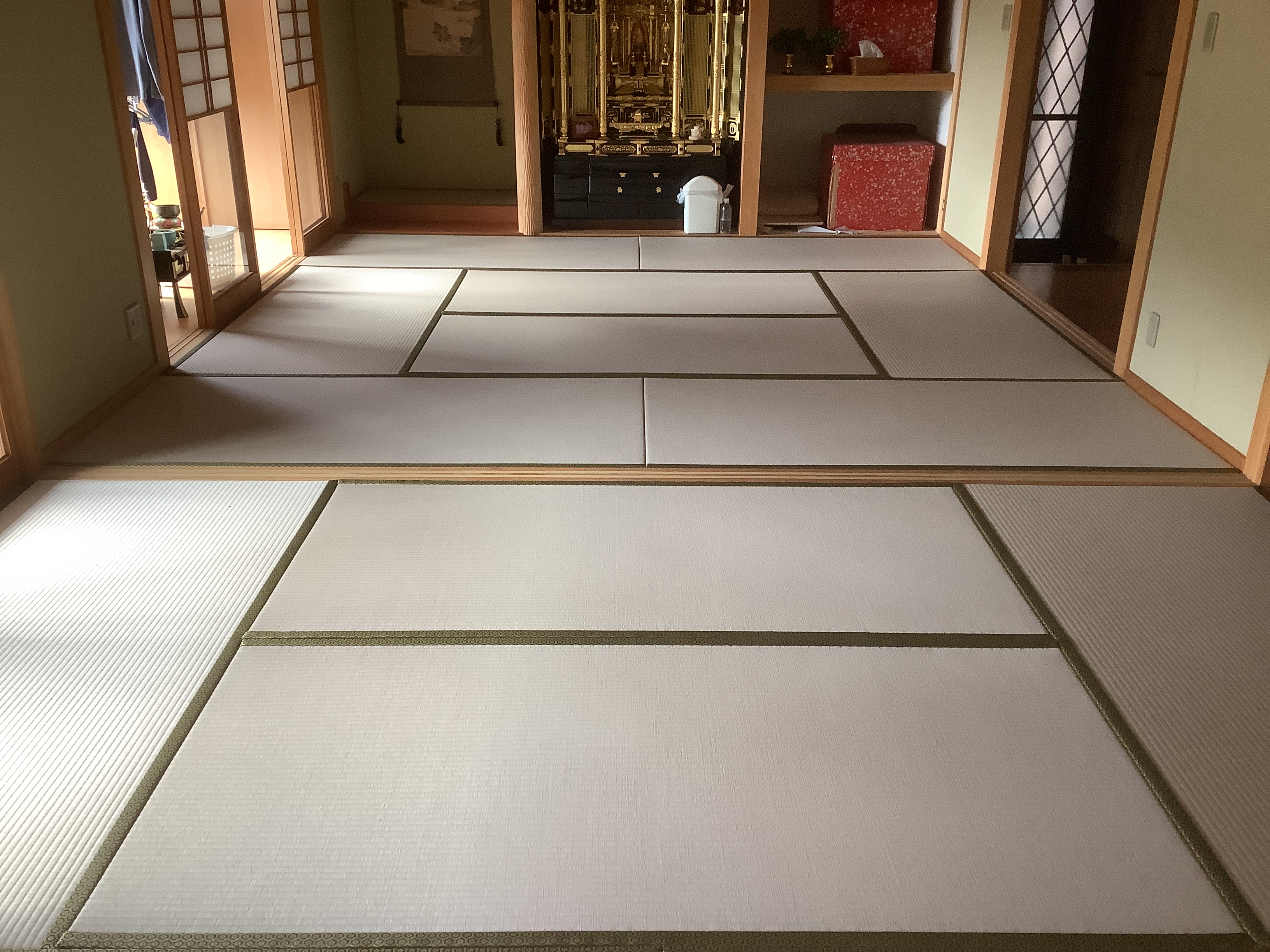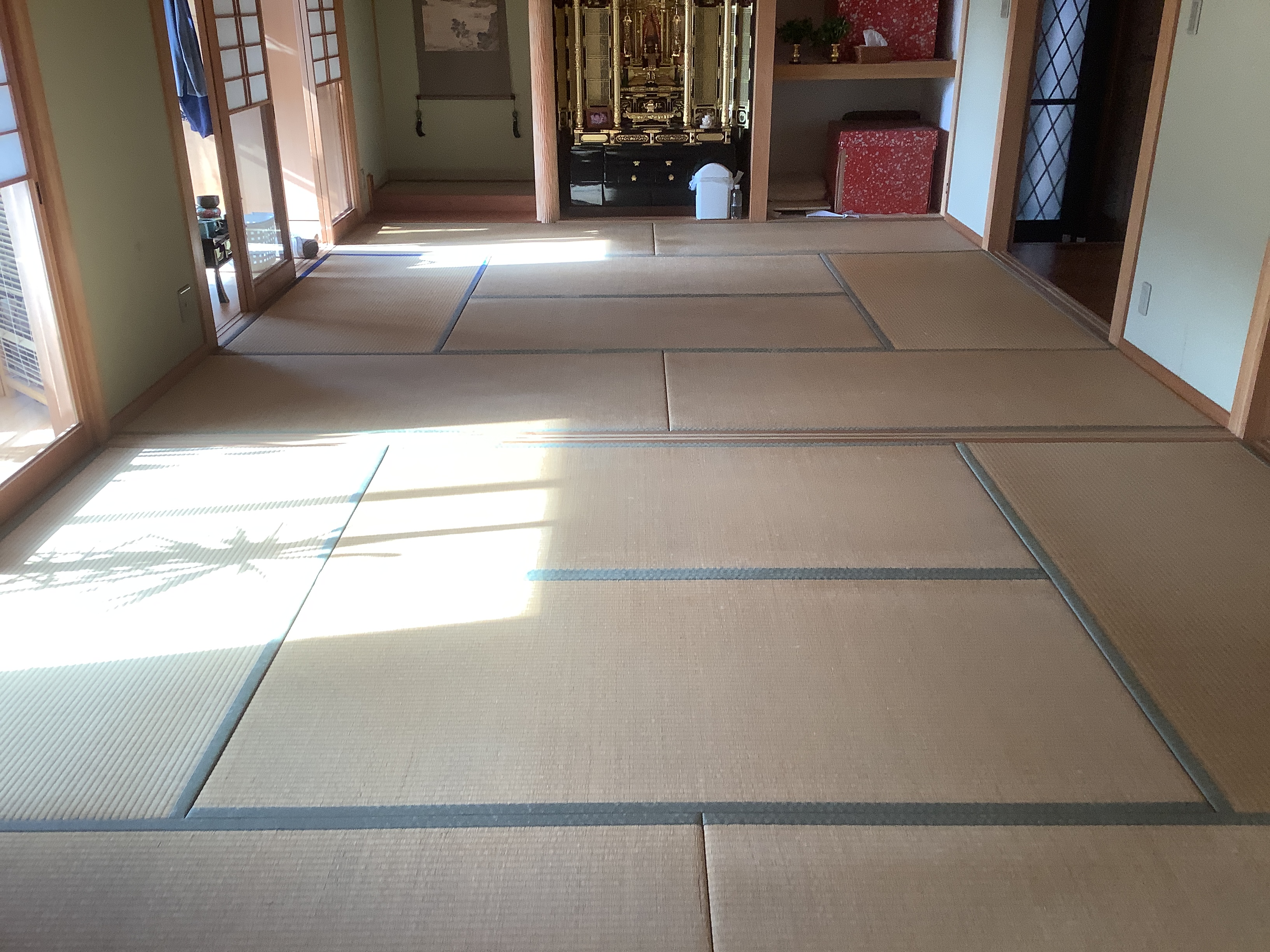この度、徳島県阿波市のお客様からご注文を頂きました ご注文を頂ければ徳島県でも愛媛県でも高知県でも伺います(^^)/ ダイケンの畳表を使って新畳への入れ替え工事でした お客さまにも喜んでいただきました 畳のことなら「川田畳製作所」へよろしくお願いいたします(^^)/